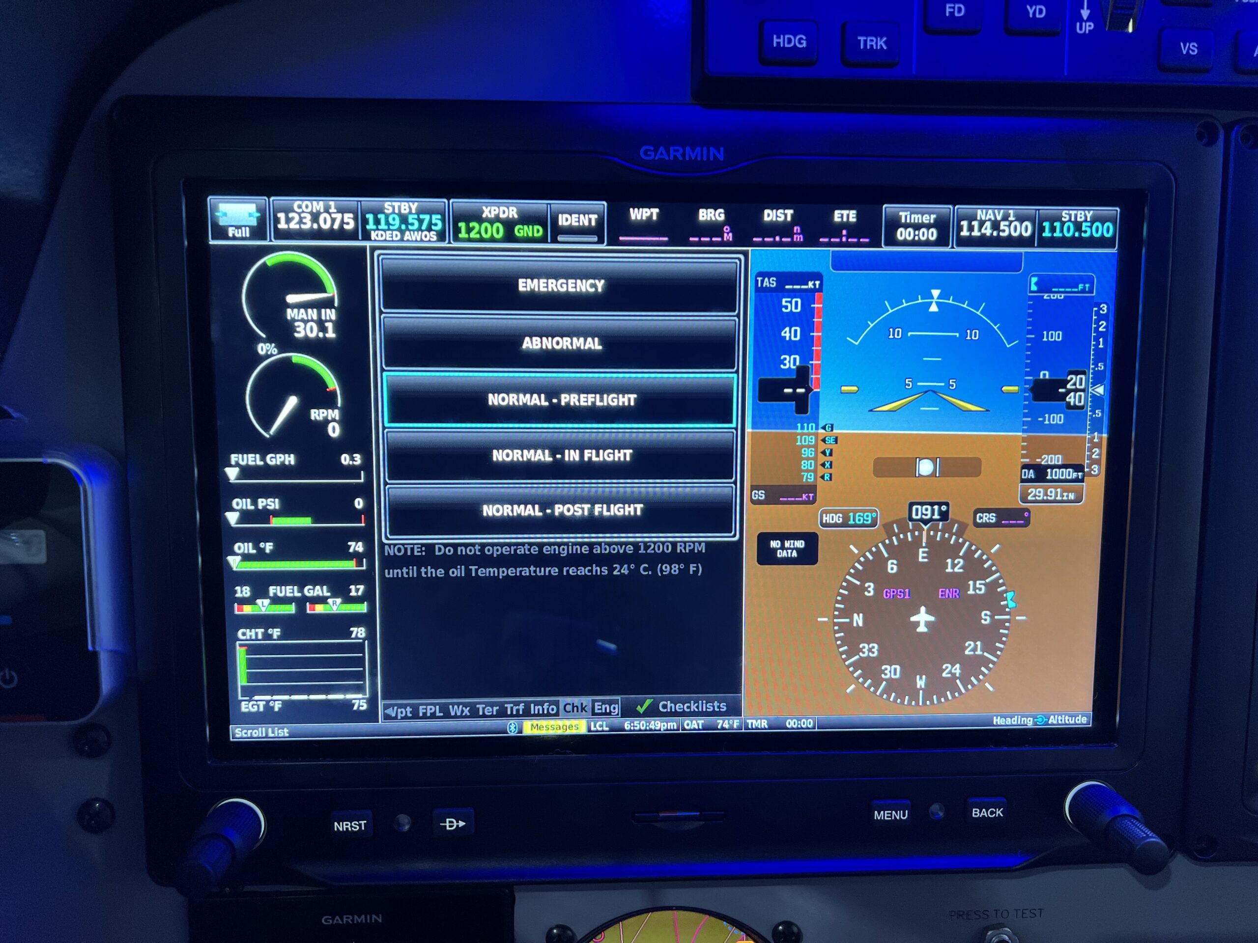 - Checklists used on Garmin Integrated Flight Deck systems may be displayed as a blank page if the file contains a long sentence with contiguous characters. This can be corrected by adding a space character in the sentence.