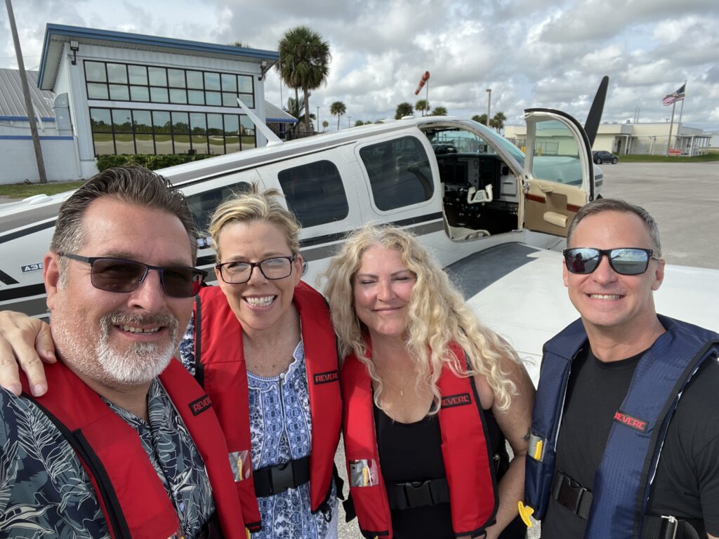 Meeting up at Ft. Pierce for Breakfast Before Launch. Phil’s C182 next to us.Our Travel Buddies, Scott and Jill W.And We’re off to Stella MarisIf you look closely, you can see us over taking Phil just below along the Nassua Southern CoastlineTwo Cruise Lines with their private Island ExperiencesCape Santa Maria Resort awaits our arrivalThis resort is so beautifulGot to do a little scuba diving with Phil and Darryl Holden and Eric SpainBeech Bash Guys Representing in the BahamasMonument to the first landing of Christopher ColumbusVery Windy up on the MonumentThe harbor behind us looks so prestine, just like when Columbus landed over 500 years ago.OCFC Phil’s C182 Looks so lonely waiting to leave the islands.